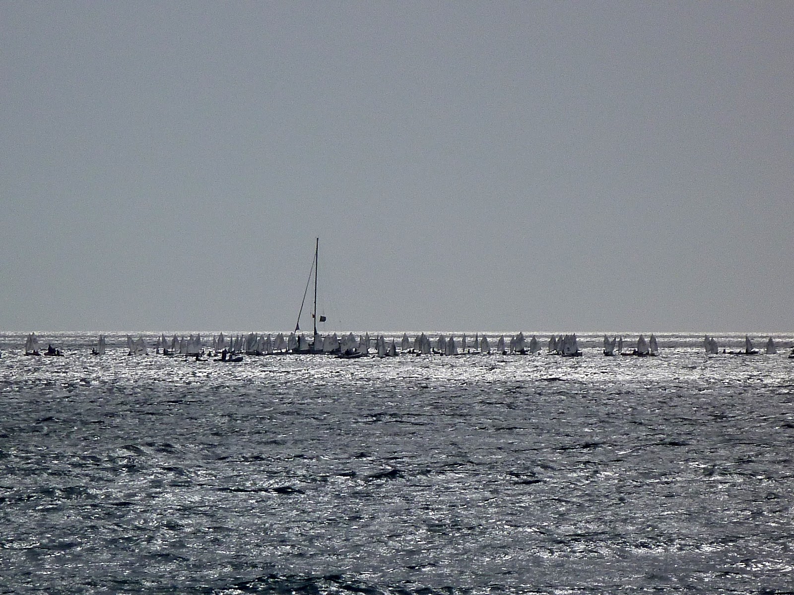 the little sailing boats are out en masse and a lesson is in full swing as they are all assembled around the large teaching boat