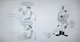 'I never thought that for more than 25 years I would work as a professional cartoonist. I spotted this inclination early on, but did not place much importance on it. I used it in an amateur fashion as a toy. My first job was the cartoon illustration of Hellenic Mythology by Nikos Tsiforos in 1960. I signed the cartoons as 'Dimos' keeping 'Skoulakis' for painting. Three to four months later, when I was quite well known, I was suddenly remembered by the leadership of … the Party. (the Greek Communist Party). After accusing me of 'wasting my talent in the service of the bourgeoisie', they sent me to Avgi (CP newspaper)… In general,  my cartoons are divided into two categories, the 'free' and the political - without implying that there is no indirect political commentary in the 'free' ones'.