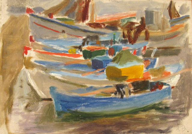 Aegina, Pier and Boats, 1988, (oil on canvas)